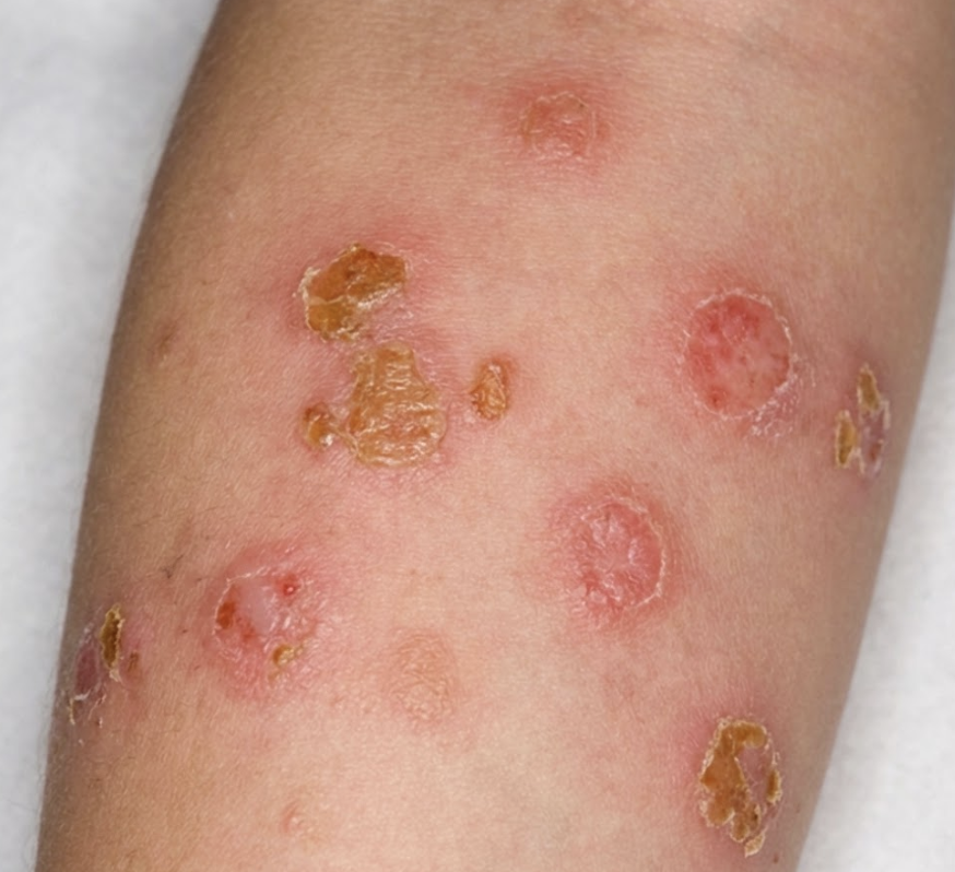 2. 痂皮性膿痂疹(かさぶたタイプ):季節問わず注意